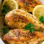 - Garnish and Serve: Spoon sauce from the bottom of the baking dish over the chicken and sprinkle with chopped parsley. Garnish with lemon slices if desired, then serve hot.