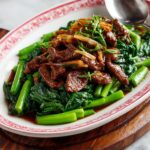 This Beef in Oyster Sauce recipe features tender marinated beef flank steak cooked quickly in a savory oyster sauce with fresh bok choy and onions. It’s a flavorful and easy Asian-inspired stir-fry perfect for a weeknight dinner served over rice or noodles.