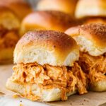 These Buffalo Chicken Sliders are a perfect game day treat featuring shredded chicken tossed in spicy Buffalo sauce, creamy ranch dressing, and melted mozzarella cheese on soft Hawaiian sweet rolls. Quick to prepare and baked to golden perfection, they make for a crowd-pleasing appetizer or snack.