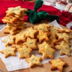 These Chili Cheese Savory Shortbread Bites are buttery, crumbly, and beautifully cheesy with a hint of spice from chili flakes and fresh rosemary. Perfect as an elegant snack for holiday entertaining or gifting, these star-shaped shortbread cookies combine sharp cheddar, Parmesan, and Gruyere cheeses for a rich, savory flavor. Made with a simple food processor method (or by hand), they bake to golden perfection and crisp up delightfully as they cool.