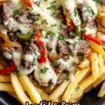 This Philly Cheesesteak Fries recipe combines crispy crinkle-cut fries topped with tender, caramelized ribeye steak, sautéed peppers and onions, and a rich, creamy cheese sauce made from white American and Parmesan cheeses. A comforting and indulgent dish perfect for sharing or a satisfying meal.