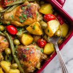 A healthy and flavorful one-pot chicken potato bake loaded with tender chicken thighs, cubed potatoes, green beans, cherry tomatoes, and a tangy honey lemon garlic sauce. This protein-packed, family-friendly recipe is easy to prepare and perfect for a comforting dinner.