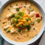 - Combine and Serve: Stir the shredded chicken back into the soup along with the creamy mixture. Heat through and serve immediately. Optionally, top with green onions, sharp cheddar cheese, and extra hot sauce for added flavor.