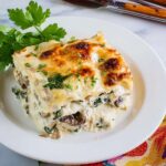 This Creamy Mushroom and Spinach Lasagna is a comforting Italian-inspired dish featuring layers of no-cook lasagna noodles, a rich ricotta and mozzarella cheese blend, sautéed spinach and mushrooms, and a smooth homemade white sauce. Baked until bubbly and golden, it's an elegant yet approachable vegetarian main course perfect for family dinners or special occasions.