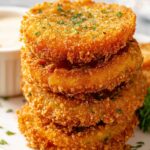 Fried Green Tomatoes feature firm, unripe tomatoes sliced, breaded in a flavorful seasoned mixture, and fried to a golden crisp. Served with a tangy, spicy remoulade sauce, this classic Southern appetizer offers a perfect balance of crunch and zest that’s irresistible.