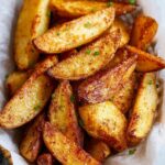Crispy Garlic Parmesan Potato Wedges are a flavorful and easy-to-make side dish or snack featuring russet potatoes coated in a savory blend of Parmesan cheese, garlic, and Italian seasoning, baked to golden perfection and served with your favorite dipping sauces.