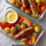 A flavorful and hearty oven-roasted dish featuring sweet Italian sausage, baby potatoes, onions, and red bell peppers seasoned with aromatic herbs and garlic, perfect for a quick weeknight meal or meal prep.