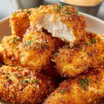 This Easy Crack Chicken Tenders recipe features juicy chicken tenders coated in a crispy and flavorful mixture of mayonnaise, Parmesan cheese, Ranch seasoning, garlic powder, onion powder, and crushed Ritz crackers. Baked to golden perfection, these tenders make a delicious and simple meal that's perfect for a quick dinner or snack.