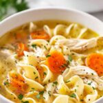 - Use wide or extra wide egg noodles for the best texture that holds up well in slow cooker soup.