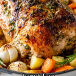 This Dutch Oven Turkey Breast recipe yields a juicy, succulent, and flavorful turkey breast with perfectly crispy skin. The turkey is slathered in a garlic and herb compound butter, roasted alongside fresh vegetables, and served with a rich homemade gravy, making it the ultimate roast turkey breast dish for any occasion.