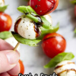 Since this appetizer is served cold or room temperature, reheating isn’t necessary. If your mozzarella firms up in the fridge, letting the skewers sit at room temp for 15 minutes before serving helps the flavors pop again.