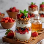 - Add Remaining Layers: Cover with the rest of the yogurt, followed by the remaining fruit and granola to complete the layers.