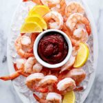 - Arrange and Serve: On a serving platter, spread a layer of crushed ice. Arrange the shrimp and lemon wedges on top of the ice and serve chilled with the cocktail sauce on the side.