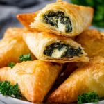 A traditional Greek spanakopita recipe featuring sautéed spinach, fresh herbs, feta cheese, and flaky phyllo dough folded into crispy triangles. Perfect as a savory appetizer or main course, this dish is baked to golden perfection and offers a delightful combination of flavors and textures.