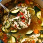 - Finish the soup: Stir in the canned diced tomatoes, zucchini, and chicken stock. Bring the mixture to a boil and simmer for 20 minutes until the potatoes are tender. Meanwhile, shred the rested chicken and add it back to the soup just to warm through.