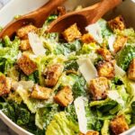 A classic Caesar salad featuring crisp romaine lettuce, crunchy homemade croutons, shaved Parmesan cheese, and a tangy creamy dressing made with mayonnaise, lemon juice, and Worcestershire sauce. Perfect as a side or a light lunch, this flavorful salad is easy to prepare and can be stored for up to 5 days in the fridge.