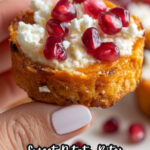 Sweet Potato Bites with Honey and Feta are a delightful appetizer featuring roasted sweet potato rounds seasoned with thyme, garlic, cayenne, and seasoned with honey, feta cheese, and pomegranate arils for a perfect balance of sweet, savory, and tangy flavors.