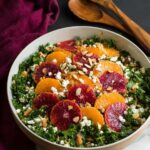 A vibrant and seasonal Kale Orange Salad bursting with nutritious kale, sweet juicy oranges, tangy goat cheese, crunchy toasted almonds, and a bright white balsamic vinaigrette dressing. This refreshing salad is perfect as a healthy side dish or light meal during winter and holiday gatherings.