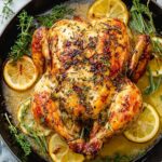 This Lemon Garlic Spatchcock Chicken is a vibrant and flavorful dish featuring a whole chicken flattened for even cooking. Infused with zesty lemon, aromatic garlic, and fresh herbs, it delivers a juicy interior and crispy skin perfect for a delicious main course.