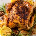 This Lemon Herb Roasted Chicken recipe offers a juicy, tender, and flavorful whole chicken with a crispy golden skin, infused with fresh herbs, garlic, and lemon zest. Ideal for a comforting Sunday dinner, it features a garlic herb butter spread under the skin and a herbaceous vegetable bed for roasting.