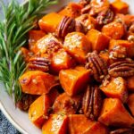 - Serve: Remove from the oven and transfer the sweet potatoes to a serving bowl or platter. Garnish with chopped candied pecans or walnuts if desired. Serve immediately while warm.