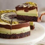 This No Bake Dubai Chocolate Cheesecake recipe features a rich chocolate cookie crust, a crispy kataifi pistachio layer, and a creamy pistachio-infused cheesecake filling topped with whipped cream. It’s a luscious, no-bake dessert that combines chocolate, pistachios, and cream cheese for a decadent treat perfect for any occasion.