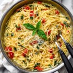 A vibrant and easy one pan pasta recipe featuring linguine, cherry tomatoes, spinach, and fresh herbs, cooked together in a single pot for a quick and flavorful meal.