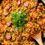 This one-pan orzo and chicken sausage recipe is a delicious and balanced meal combining protein, vegetables, and flavorful spices. Perfect for busy weeknights, it features sautéed chicken sausage, mushrooms, bell peppers, and tender orzo cooked together in a savory tomato broth.