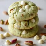 Delight in these Pistachio & White Chocolate Chip Cookies, featuring a perfect balance of crunchy toasted pistachios and sweet white chocolate chips baked into soft, buttery cookies. An irresistible treat ideal for any occasion.