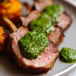 This oven-roasted rack of lamb is marinated in a flavorful rosemary garlic mixture, seared to develop a golden crust, then roasted to a perfect medium-rare. The lamb is basted with butter, garlic, and rosemary for rich flavor and served with a fresh Salsa Verde, creating an elegant and delicious main course ideal for special occasions or a refined dinner.