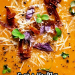 A comforting and flavorful roasted vegetable soup made with sweet potato, bell peppers, carrots, garlic, and red onion, blended with vegetable stock and finished with a creamy touch of parmesan and fresh thyme.