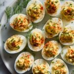 Classic Southern Deviled Eggs with a creamy filling of mayo, Dijon mustard, and dill relish, topped with a sprinkle of paprika. Perfect as a nostalgic appetizer or party favorite.