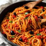 Pasta Puttanesca is a bold and flavorful Italian dish featuring a savory sauce made with anchovies, olives, capers, crushed tomatoes, and aromatic herbs, served over al dente spaghetti or your favorite pasta. This classic recipe balances salty, tangy, and slightly spicy ingredients for a truly satisfying main course.