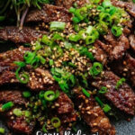 This Korean Beef Bulgogi recipe features tender and flavorful marinated rib eye steak, perfect for a quick yet authentic Korean BBQ experience. Thinly sliced steak is marinated in a savory-sweet mixture with pear, soy sauce, and gochujang before being quickly grilled to perfection. Garnished with green onions and toasted sesame seeds, this dish brings bold flavors to your dinner table.