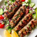 This Kofta Kebab recipe features a delicious blend of fresh ground lamb and beef mixed with aromatic spices, shaped onto skewers, and grilled to perfection. It's a classic Eastern Mediterranean dish known for its tender, flavorful meat cooked over direct medium heat, perfect for any barbecue or dinner gathering.