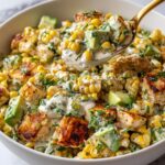 - Assemble the bowls: Place 1 cup of cooked rice into each bowl, top with about 2/3 cup of street corn salad, then add a generous scoop of the cooked chicken. Drizzle with creamy jalapeno sauce, add diced avocado on top, and garnish with a lime wedge. Sprinkle with Tajin seasoning if desired.