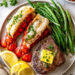 This Surf and Turf recipe combines succulent lobster tails with tender filet mignon steaks, enhanced by a flavorful compound butter made with shallots, garlic, and parsley. Perfect for an elegant dinner, the lobster and steak are cooked to perfection using a combination of stovetop searing and oven roasting, making it an impressive yet straightforward meal to prepare.