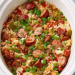 This Slow Cooker Jambalaya recipe is a flavorful and hearty Louisiana classic made easy with a mix of smoked sausage, chicken thighs, vegetables, and spices all cooked slowly with rice. It's perfect for a comforting main course that requires minimal hands-on time while delivering big, authentic taste.
