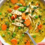 This Anti Inflammatory Turmeric Chicken Soup is a wholesome and comforting one-pot meal packed with nutritious vegetables, flavorful turmeric and spices, tender chicken, and creamy coconut milk. It’s perfect for a nourishing family dinner or meal prepping for the week, and naturally free from dairy and gluten with an option to keep it vegetarian.