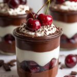 Delight in these decadent Black Forest Dessert Cups featuring layers of creamy avocado chocolate mousse, airy dairy-free whipped cream, and vibrant macerated and fresh cherries. This easy, no-bake recipe is vegan, dairy-free, egg-free, and free from refined sugar, offering a healthier twist on the classic German Black Forest cake with rich flavors and luscious textures.
