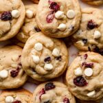 Soft-Baked White Chocolate Cranberry Cookies are deliciously chewy cookies that combine sweet white chocolate chips with tart dried cranberries. These cookies feature a creamy vanilla-scented dough that’s chilled to perfection before baking, resulting in a perfect soft and tender bite every time.